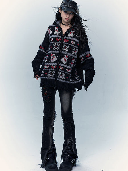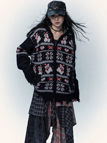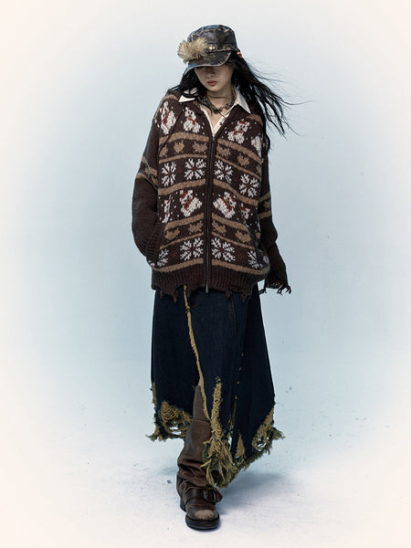 NO ROMANCE | Fair Isle Mohair Wool Knit Cardiga...