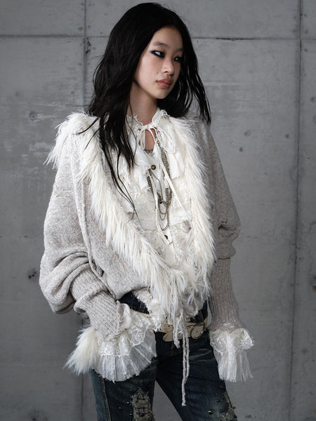 NO ROMANCE | Knitted Batwing Sleeve Hooded Sweater