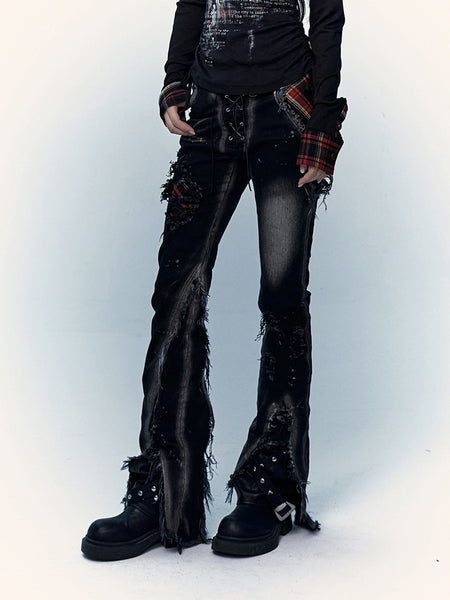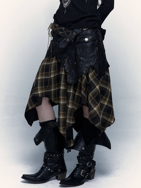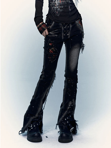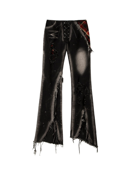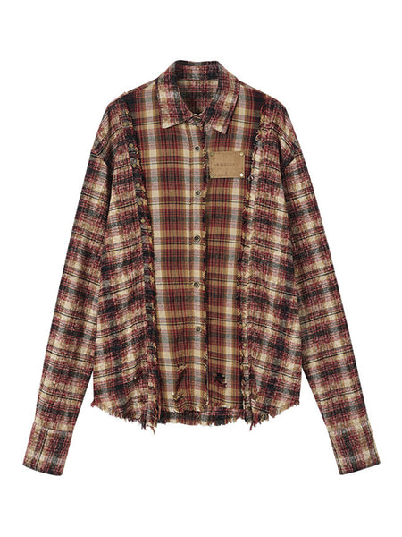 NO ROMANCE | Patchwork Plaid Distressed Washed ...