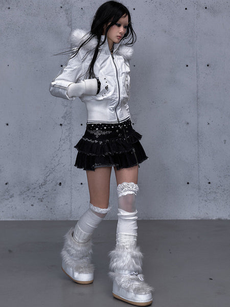 NO ROMANCE | Distressed 3D Pocket and Fur Colla...