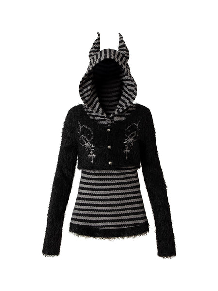 NO ROMANCE | Embroidered Two-Piece Striped Hood...