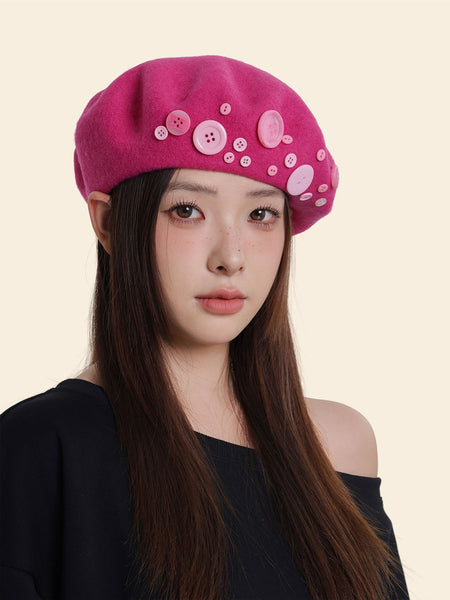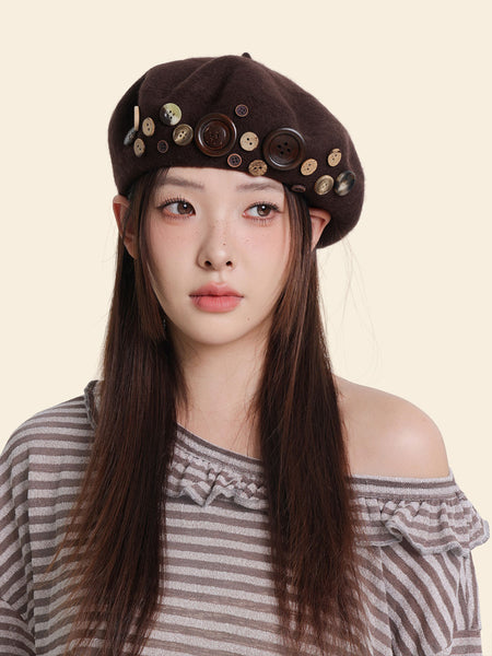 ZE&MA | Button-Embellished Beret Hat for Winter