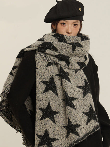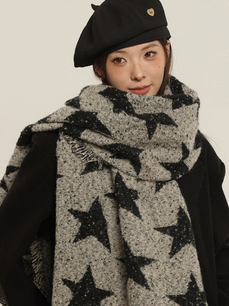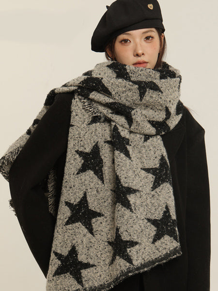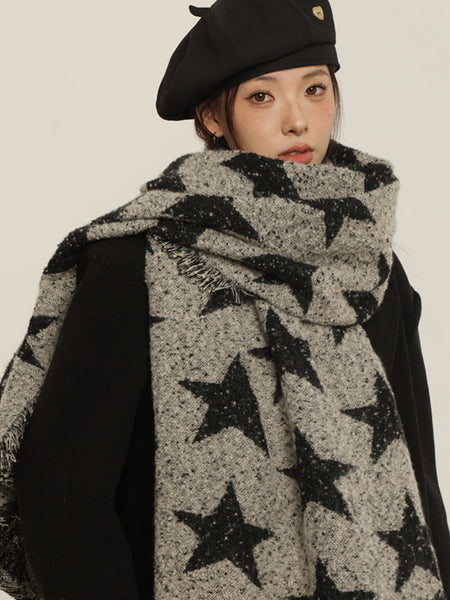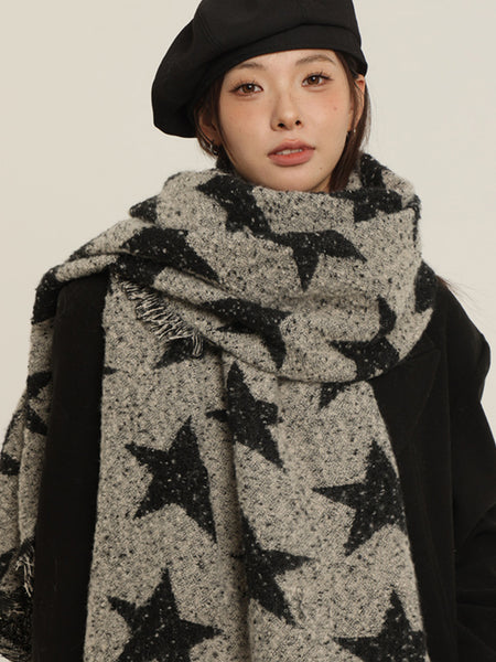 ZE&MA | Star-Print Wool Fringe Scarf for Winter
