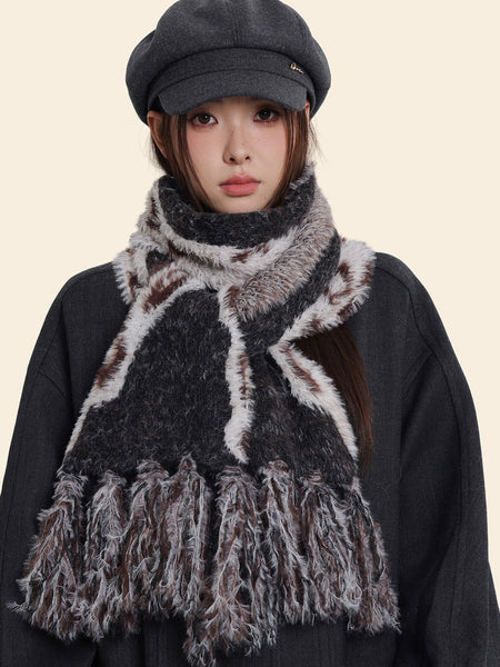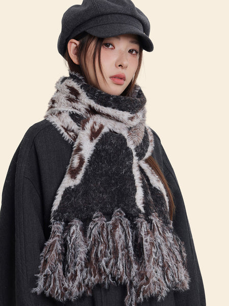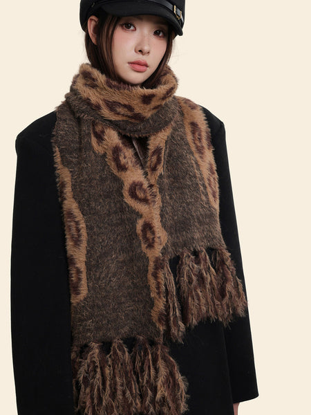 ZE&MA | Leopard Print Tassel Scarf for Winter