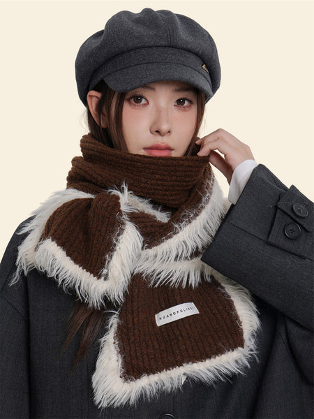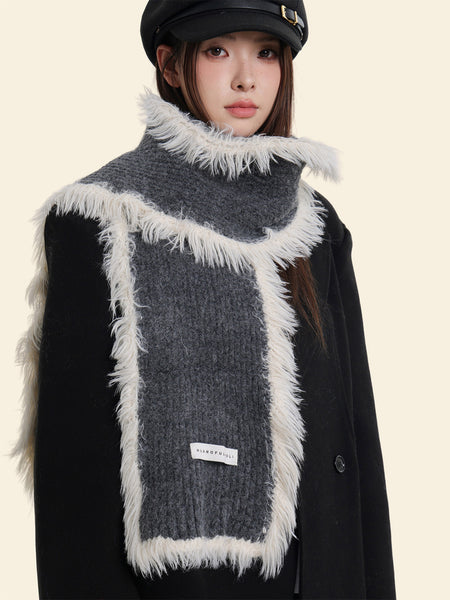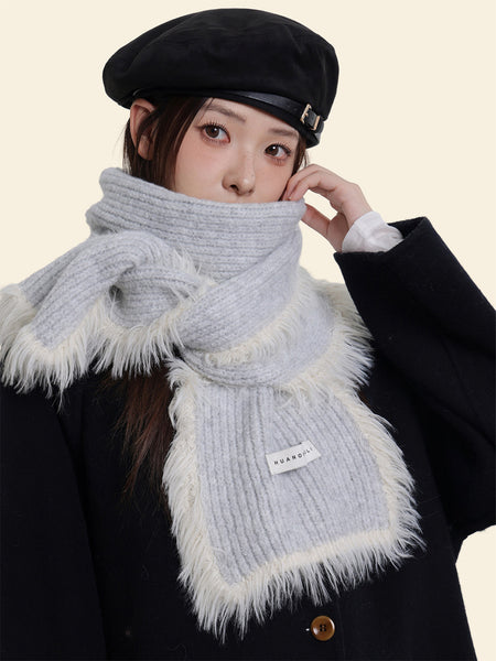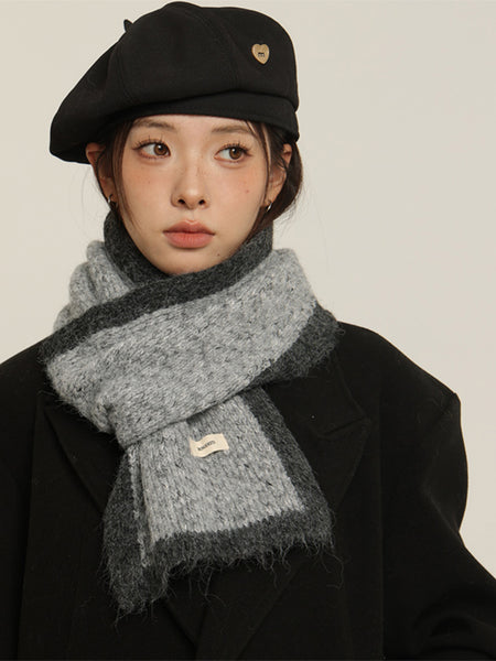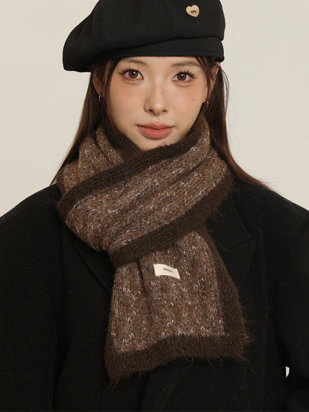 ZE&MA | Speckled Knit Wool Scarf with Contrast ...