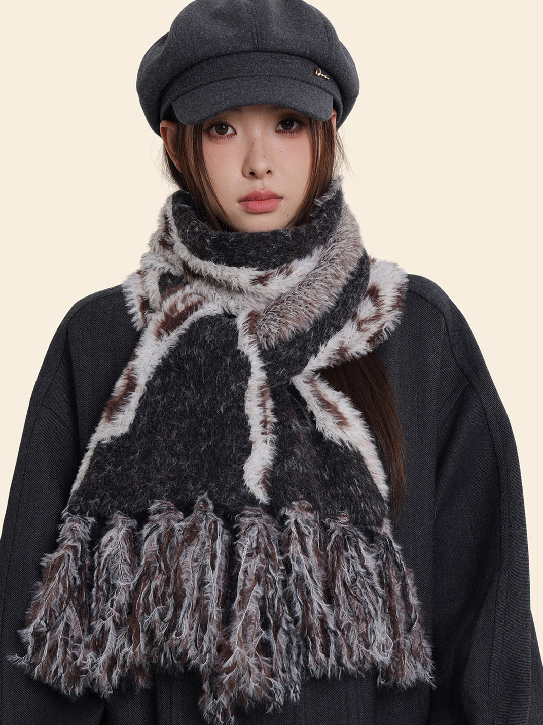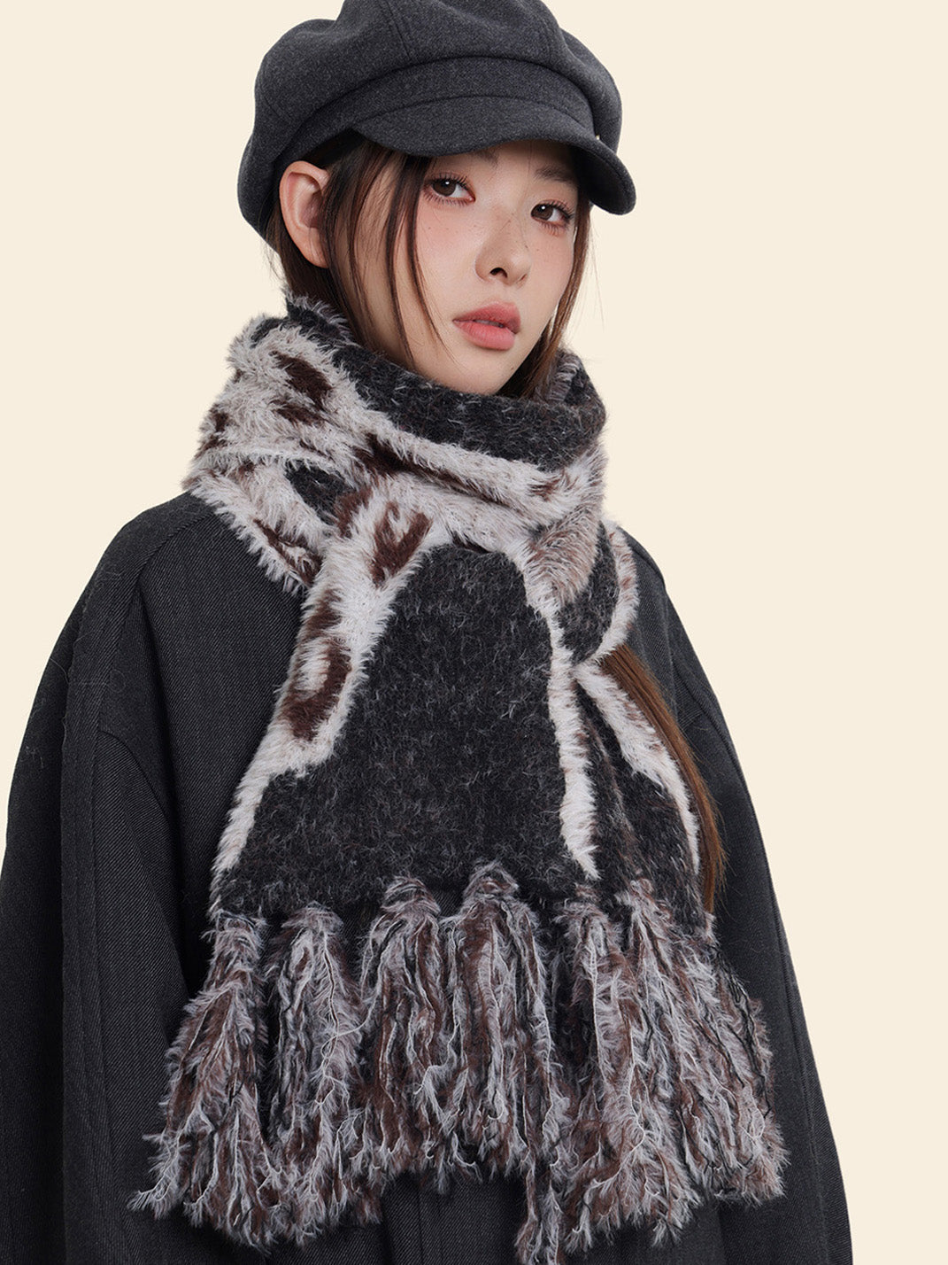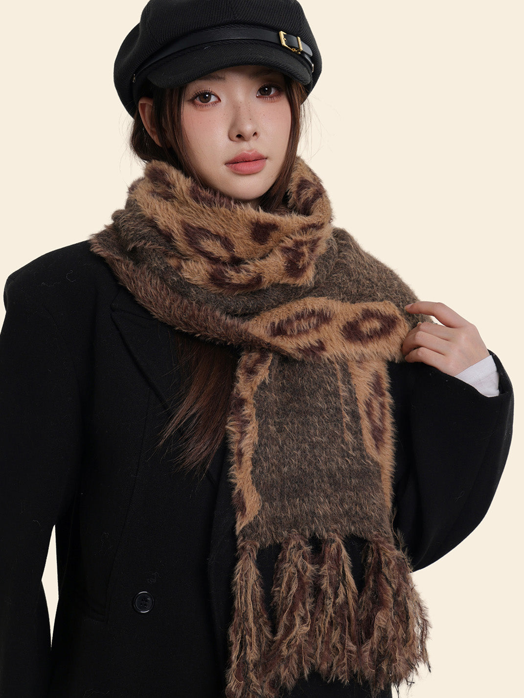 ZE&MA | Leopard Print Tassel Scarf for Winter