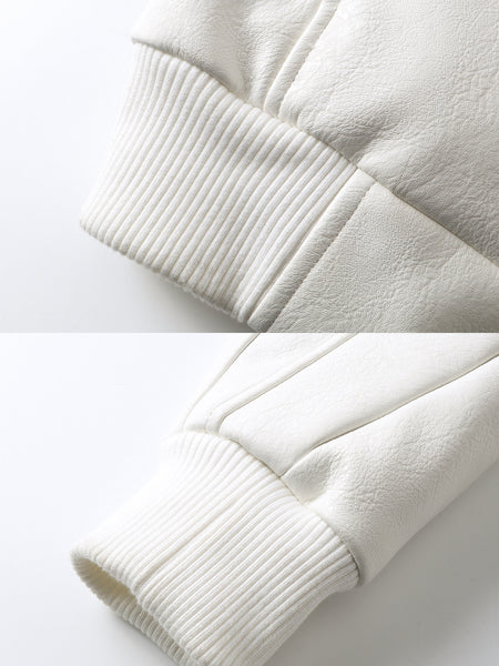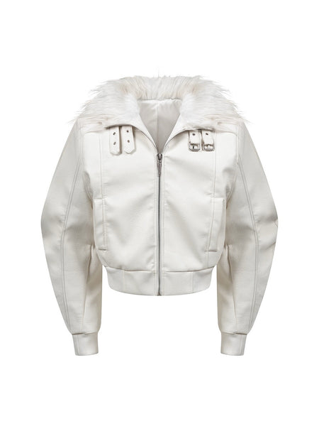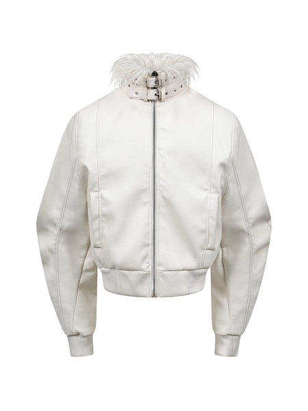 REBEL WAVE | White Devil Fur Collar Leather Jacket