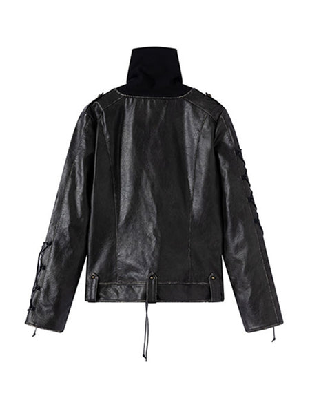 CestNous | Vintage Leather Jacket with Knit Hig...