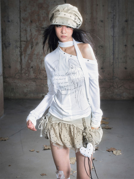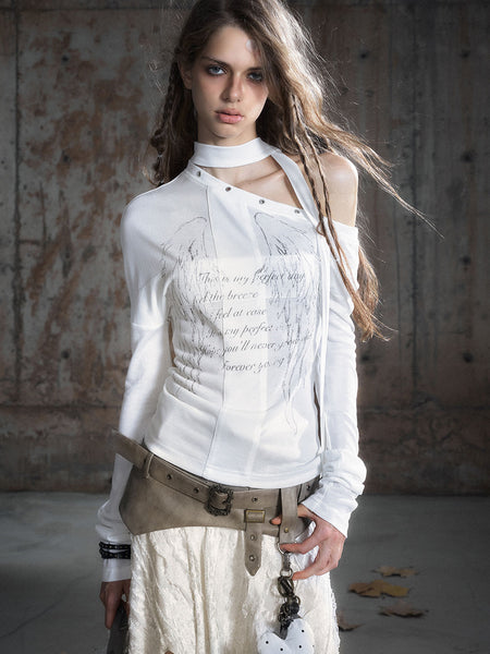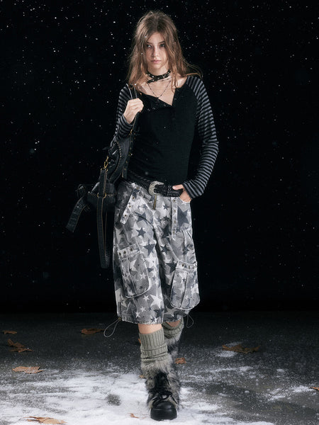 CestNous | Cross Print Studded Off-Shoulder Kni...