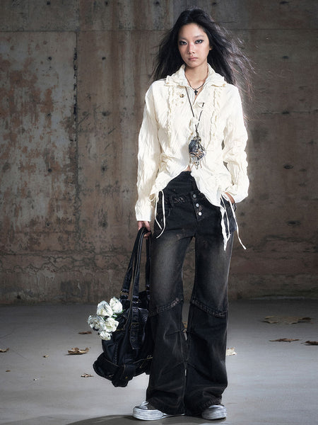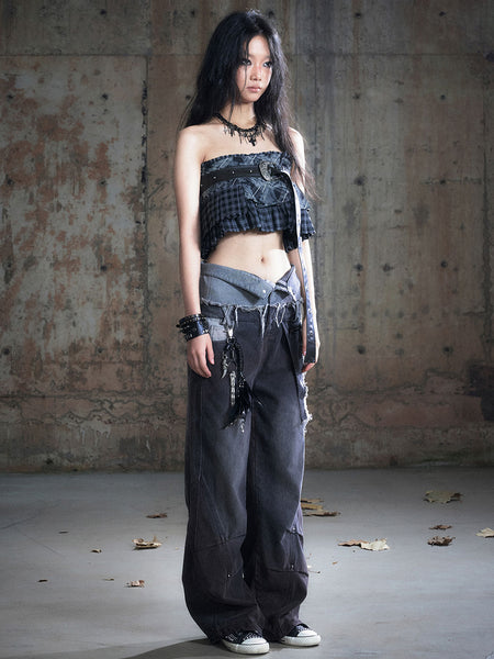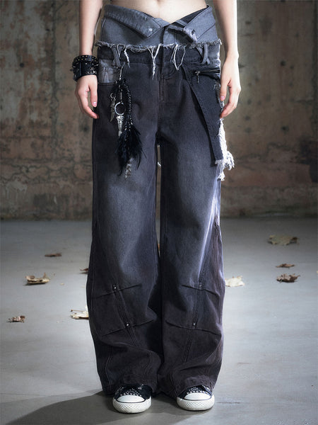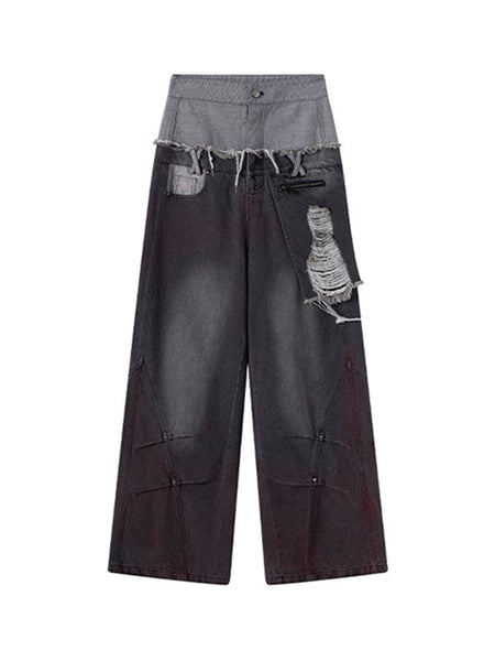 CestNous | Patchwork Distressed Wide-Leg Jeans