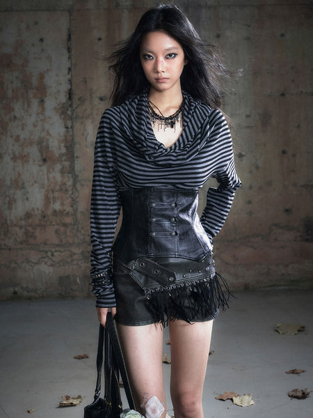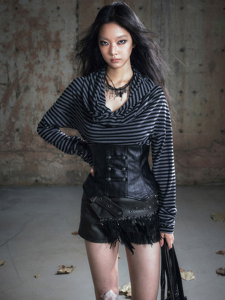 GOJOYJINNI | Rivet Pleat Leather Skirt
