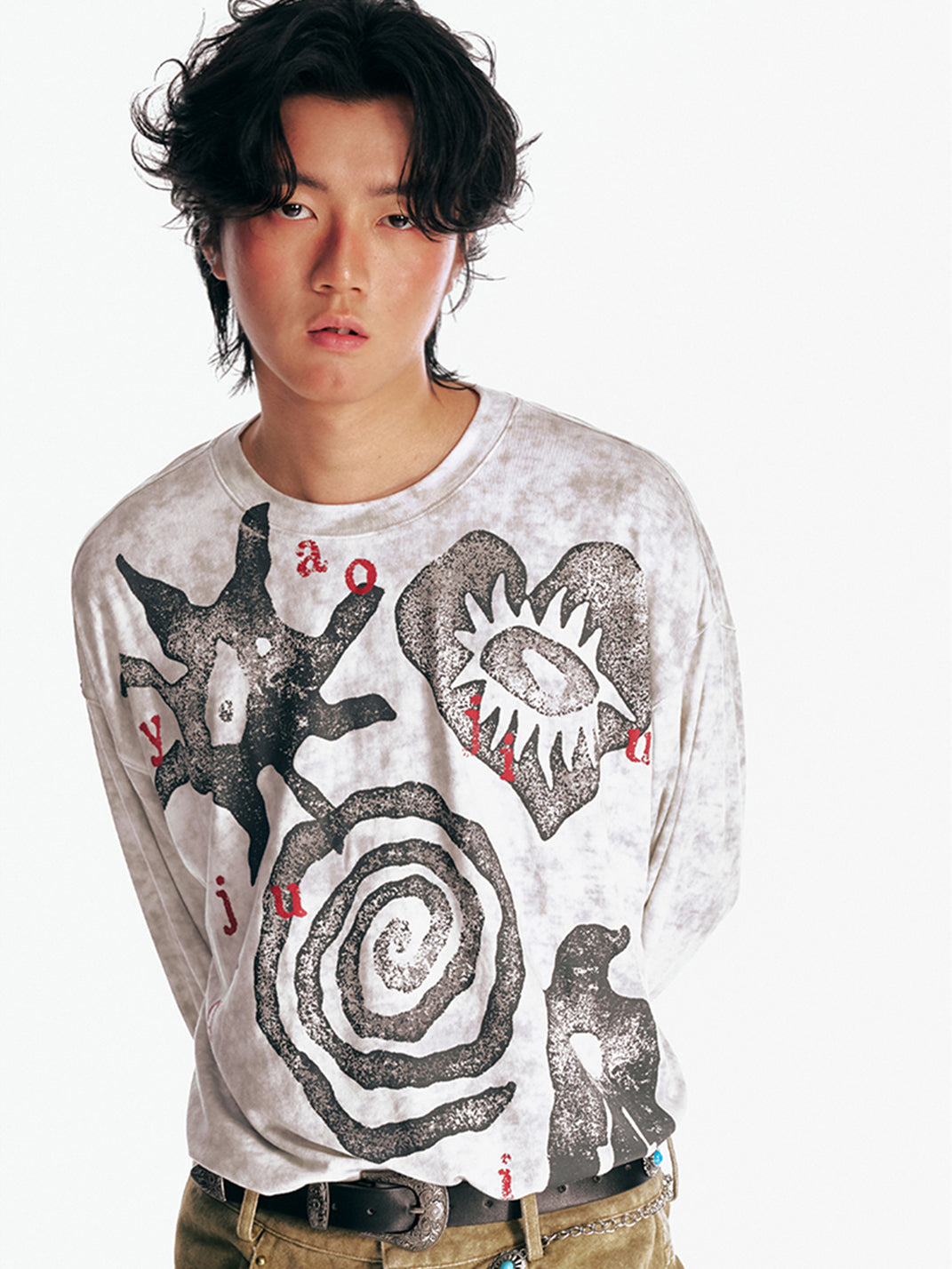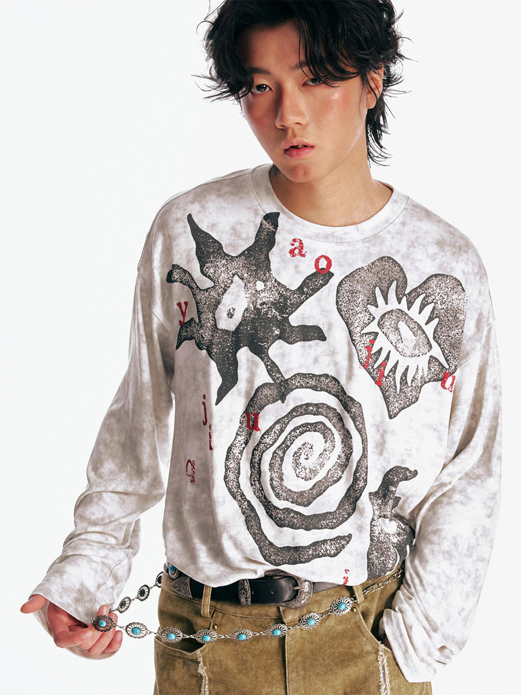 1997 | Distressed Tribal Graphics Long-Sleeve Tee