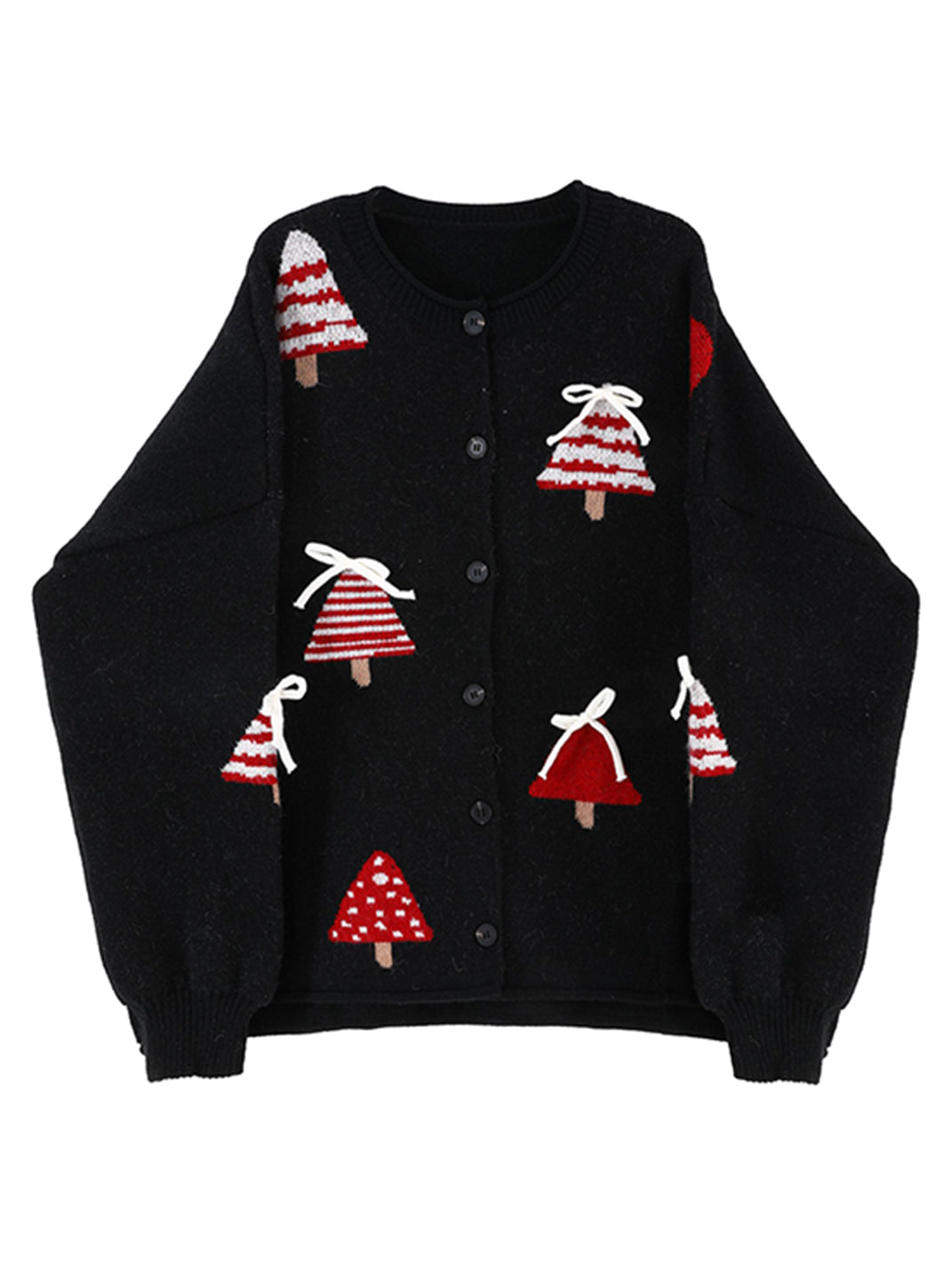 Xmas | Christmas Tree Embroidered Knit Cardigan Sweater