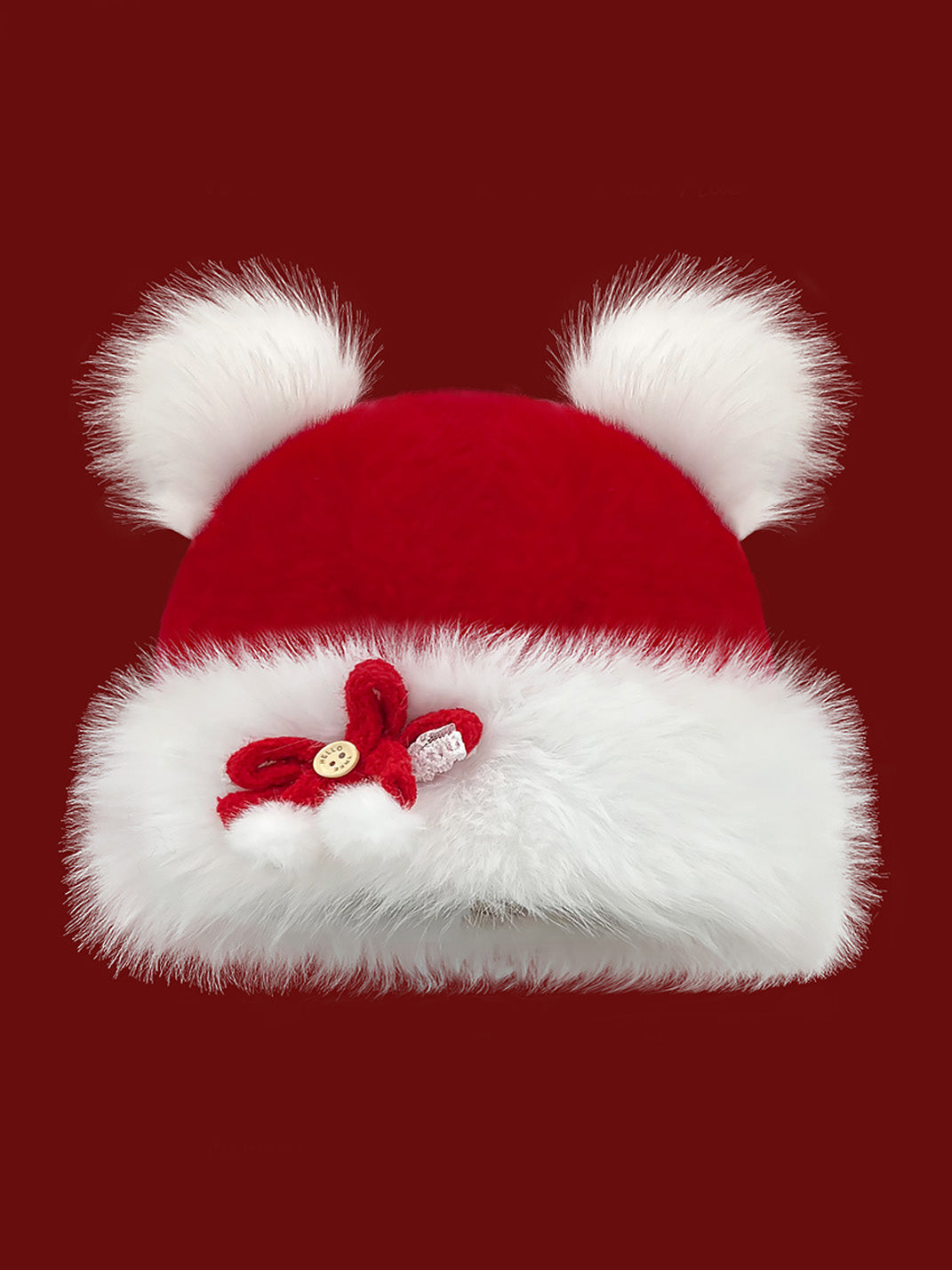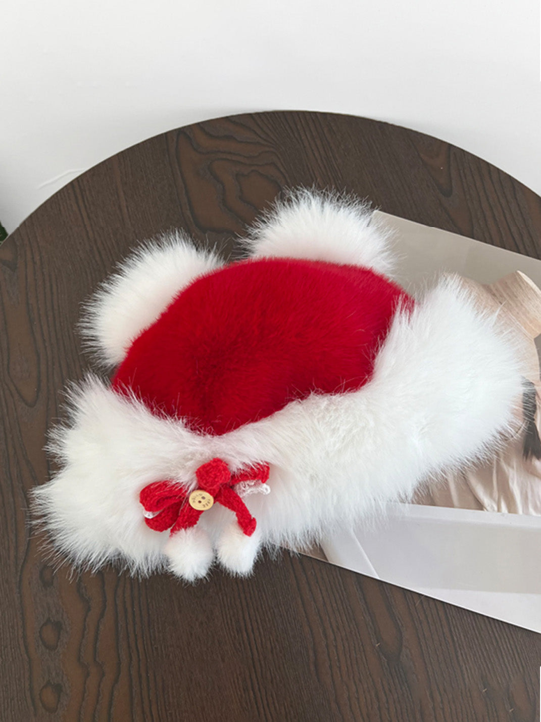 Xmas | Red Bow Decoration Plush Earmuff Hat