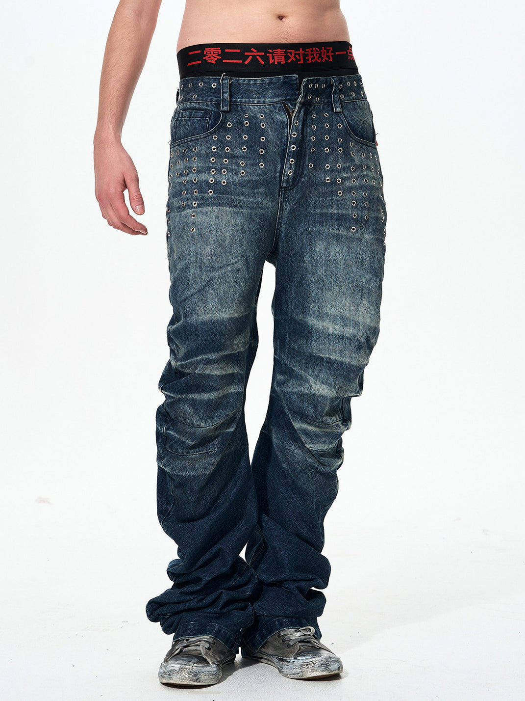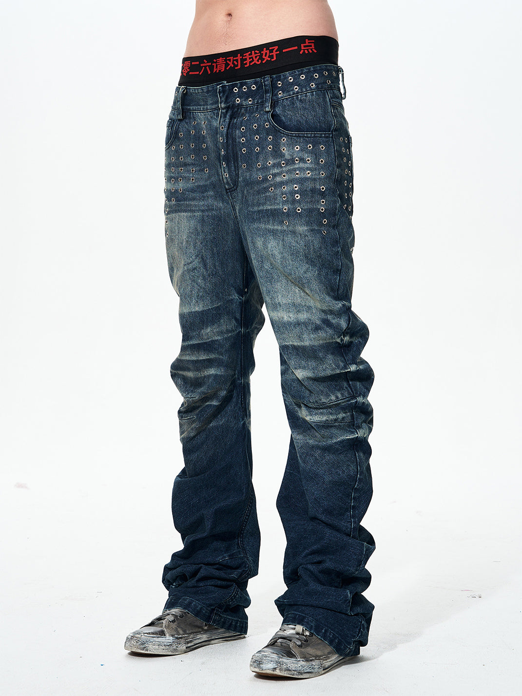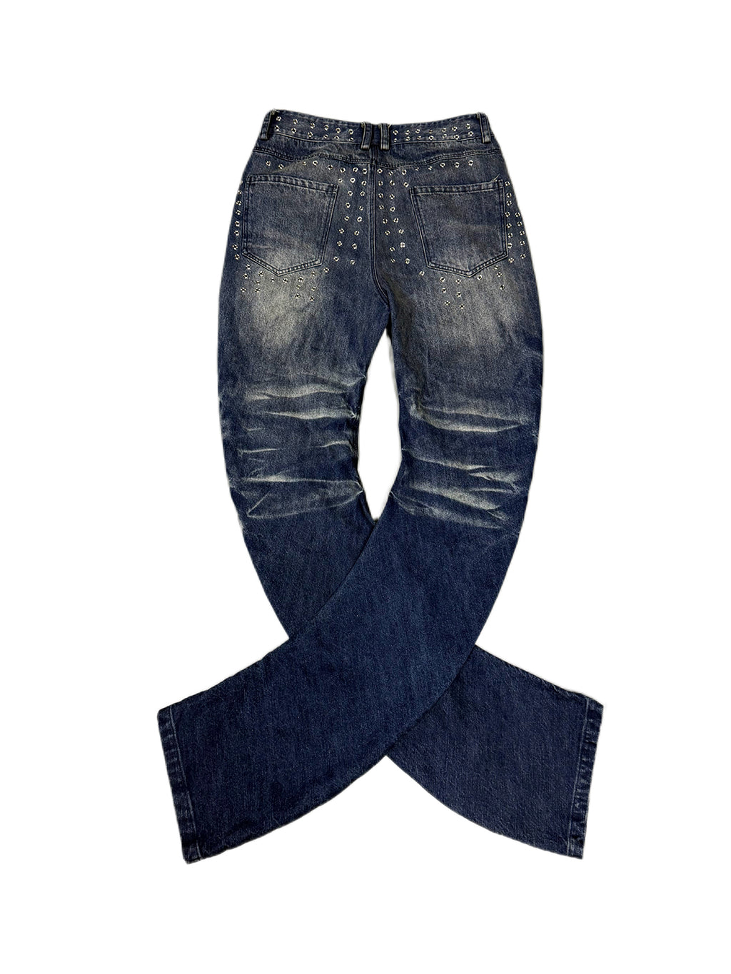 Fourth3ex | Studded Whiskering Curved Blade Jeans Skip to content