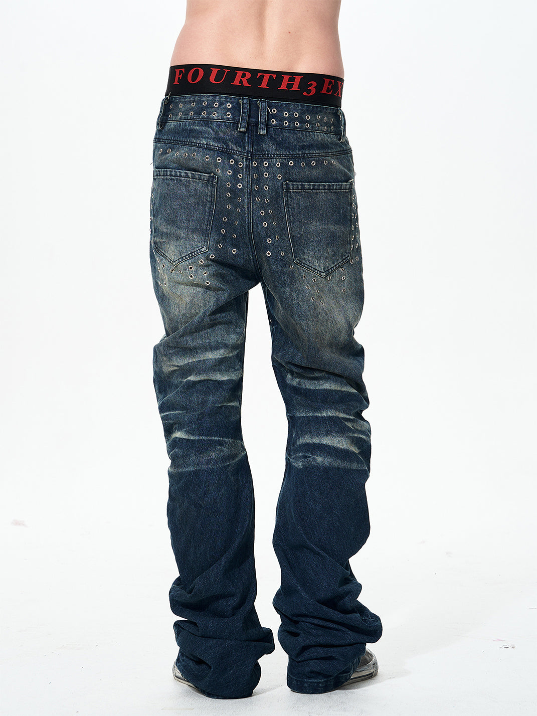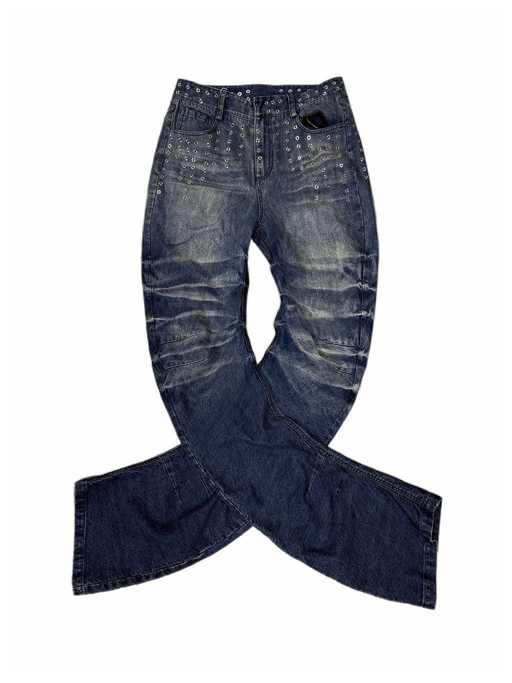 Fourth3ex | Studded Whiskering Curved Blade Jeans