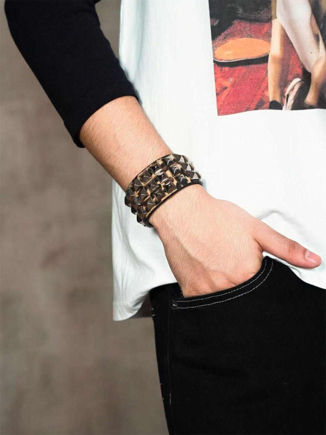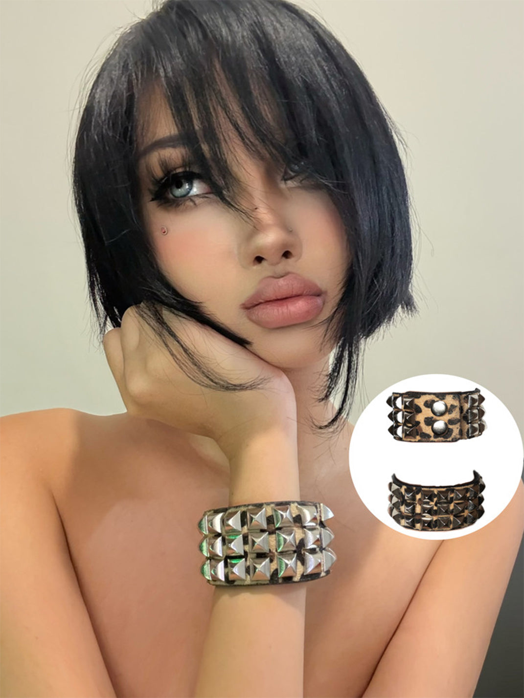 PunkFK | Furry Rivet Square Rhinestone Bracelet Skip to content