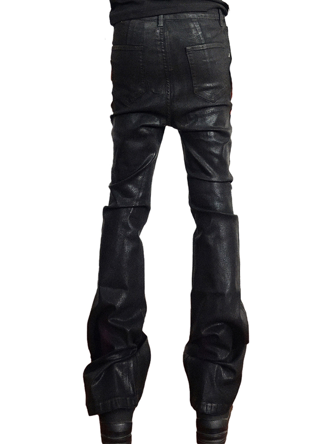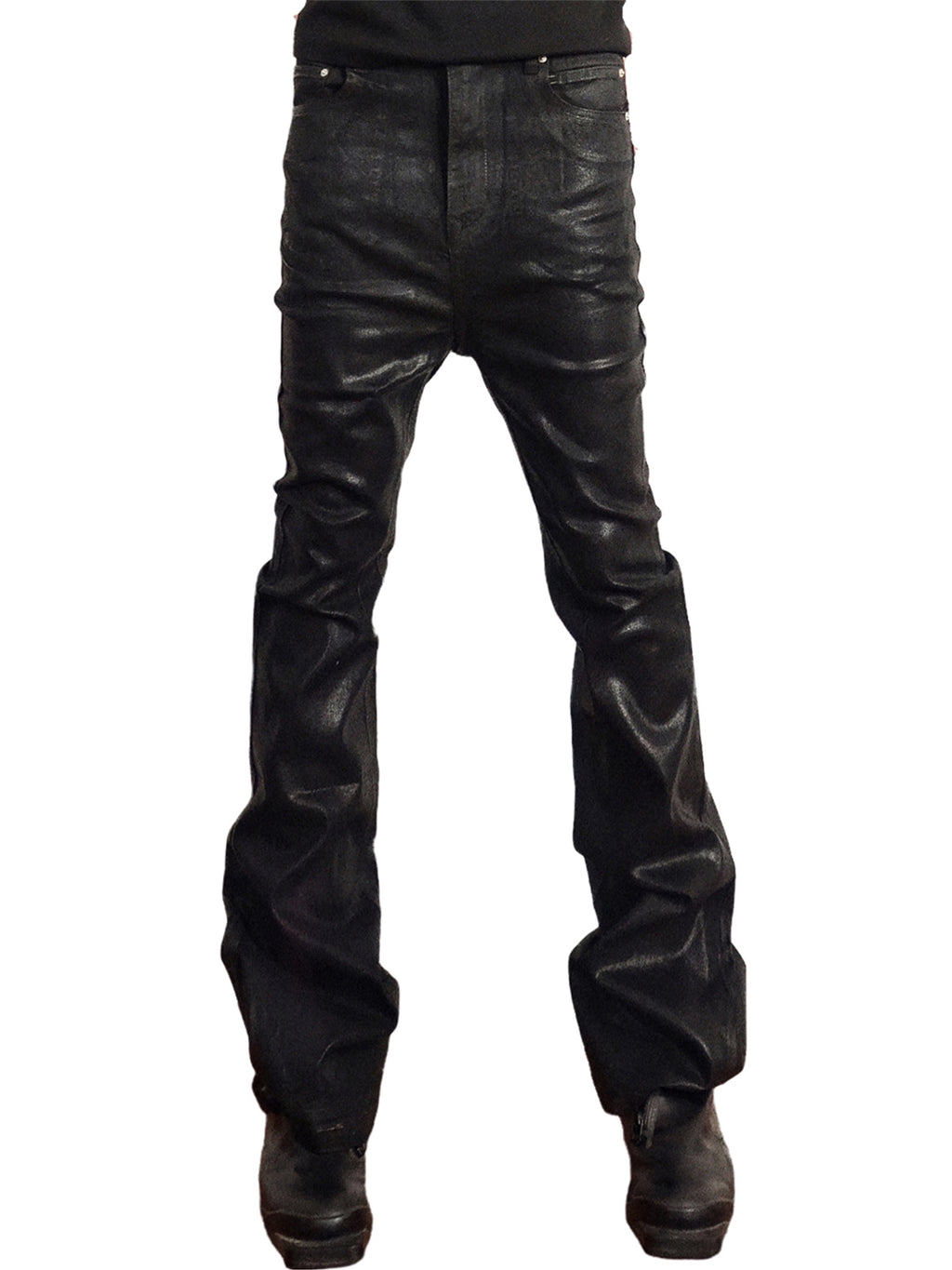 PunkFK | Shiny Wax Coated Micro Flare Zip Jeans