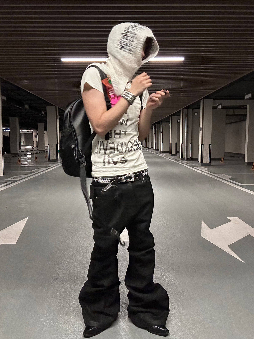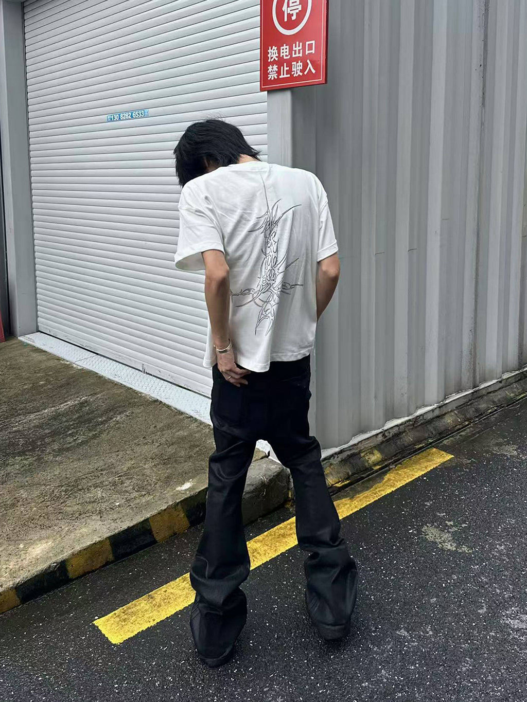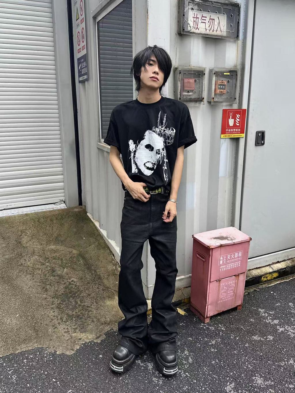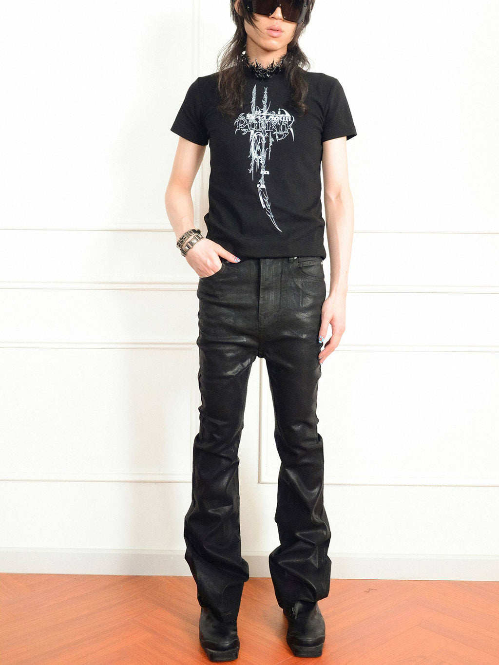 PunkFK | Shiny Wax Coated Micro Flare Zip Jeans Skip to content