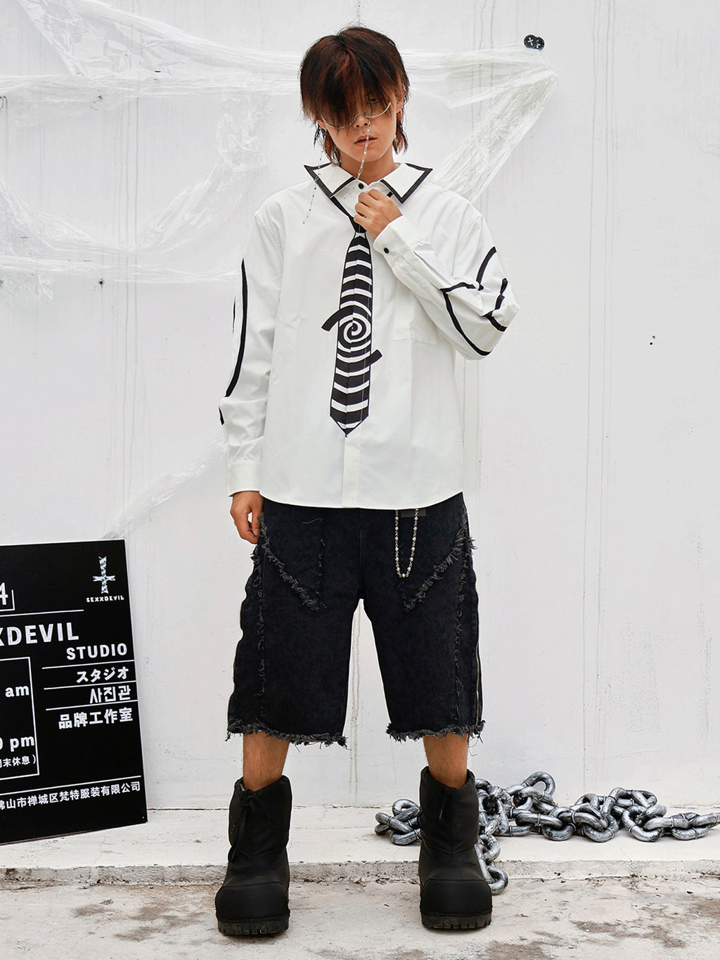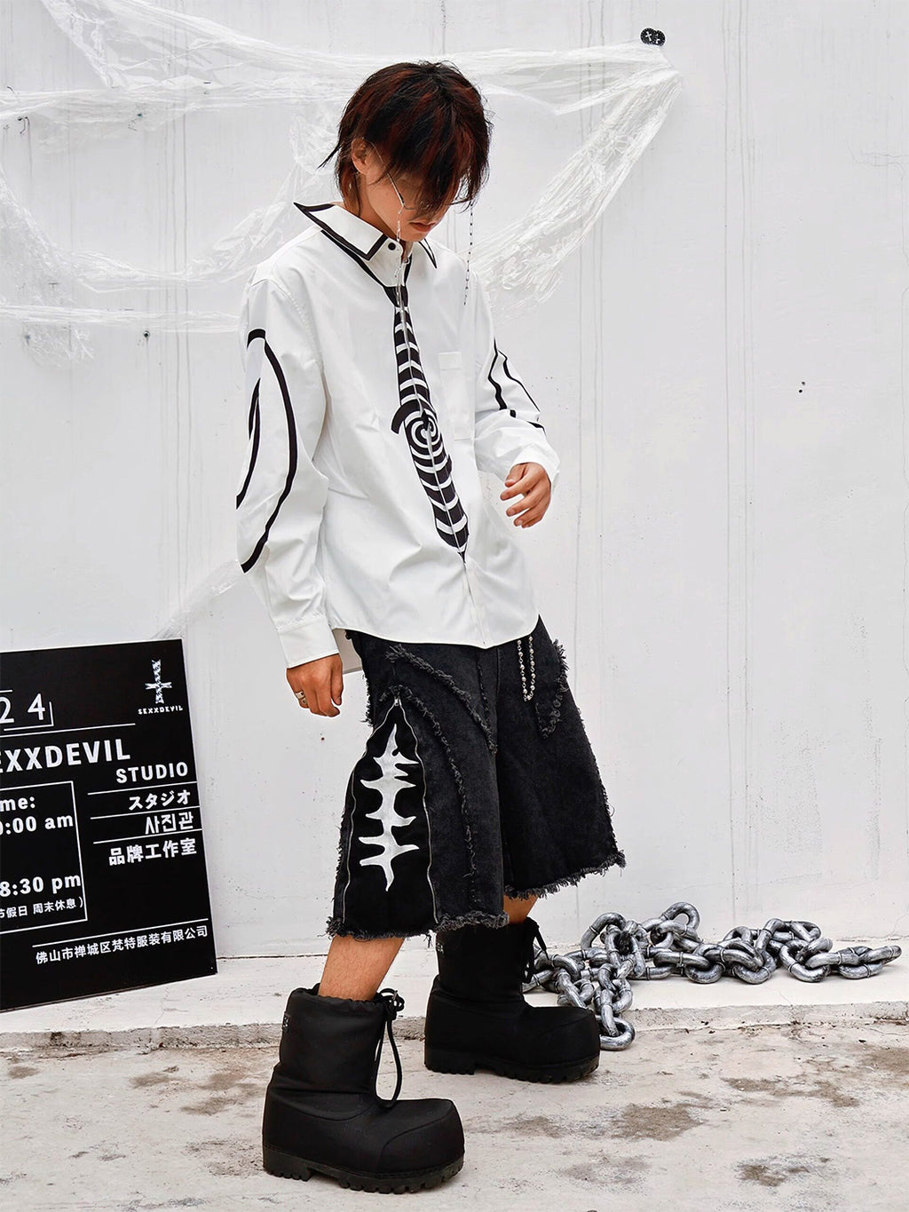 SEXXDEVIL, rooted in "Dark Punk, Hot Girl Rebellion", blends American street, gothic punk and Y2K millennial aesthetics. From distressed python-patch flared jeans, leopard-print logo rivet punk belts to vintage dirty pants, it builds a dressing system with street tension and hot-girl aura through distressed washing, rivet details and rebellious slogans. Making each piece a voice for self-attitude to unlock your undefined dark punk hot-girl style.