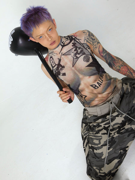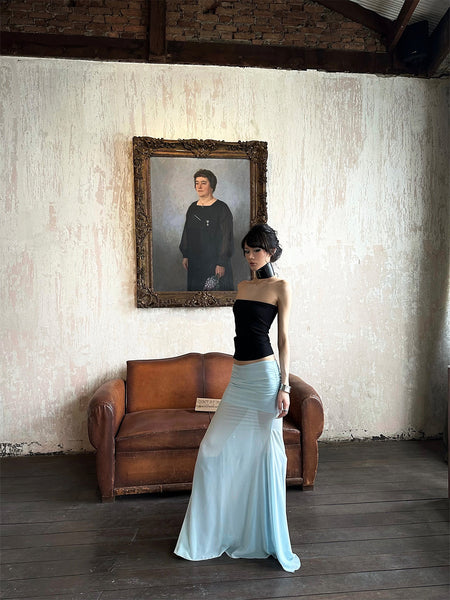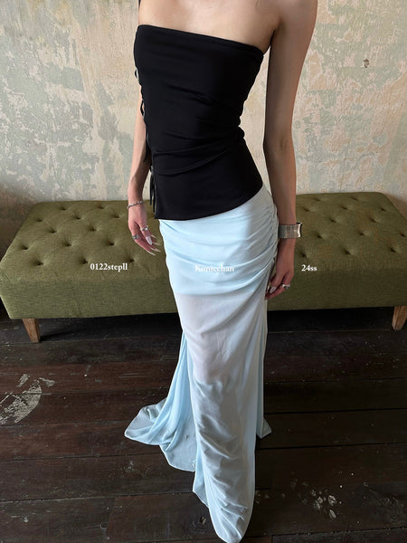 0122stepll | Mesh Fishtail Pencil Skirt