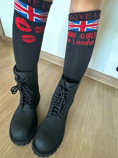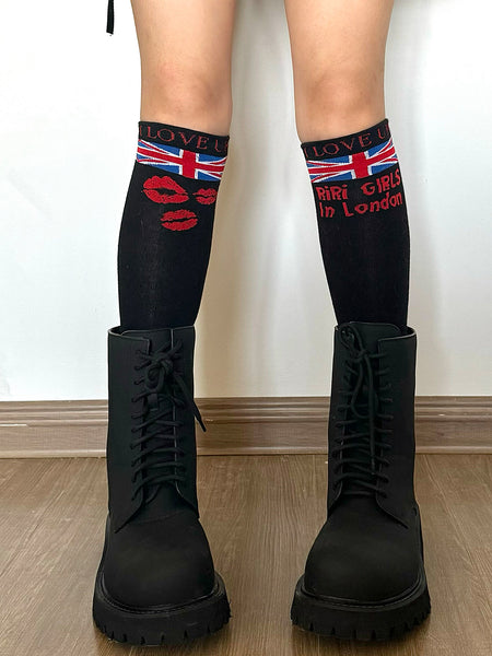 Riri Girls | Black Lip Print Knitted Leggings