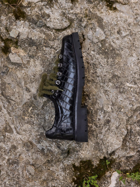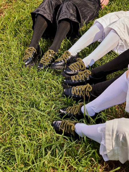 CRICLE CAGE | Genuine Leather Diagonal Lace-Up ...