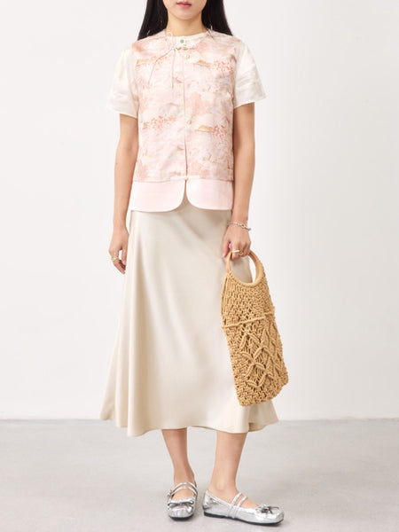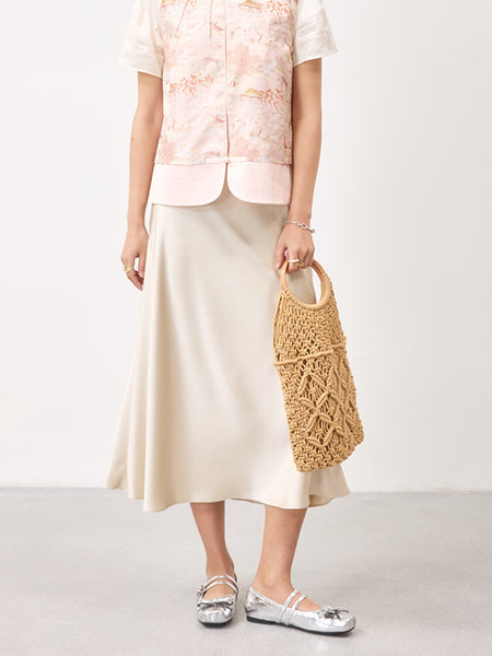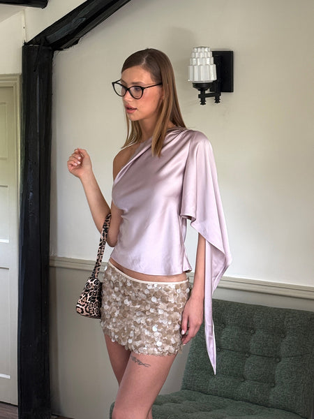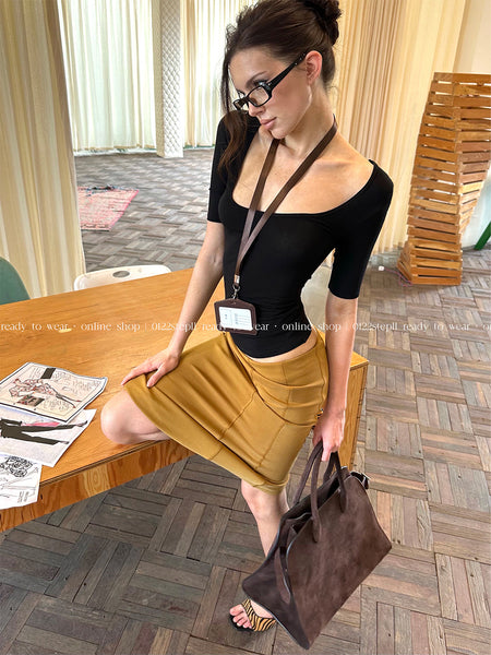 0122stepll | Satin Off-Shoulder Top