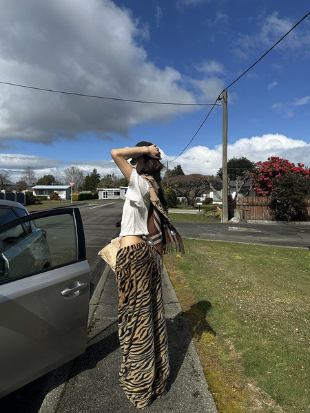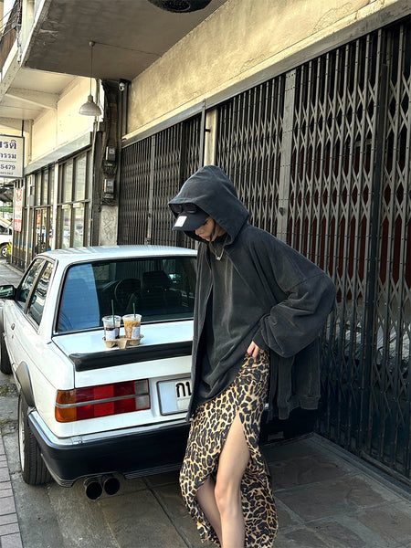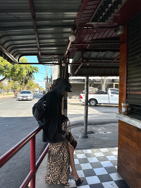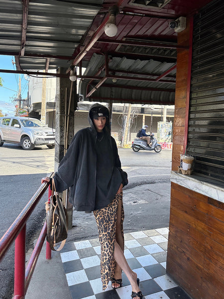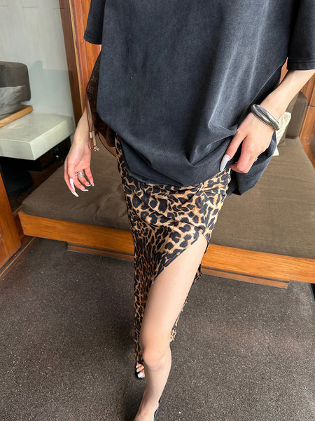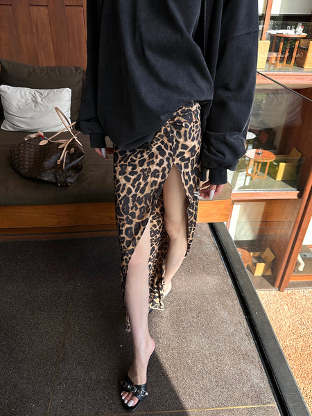 0122stepll | Leopard Print Slit Skirt