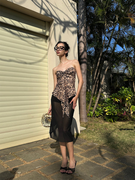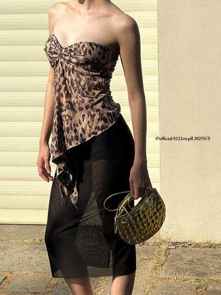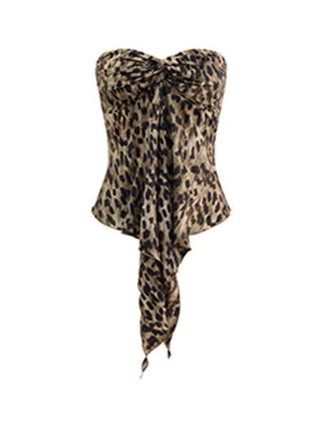 0122stepll | Leopard Print Backless Strapless Top