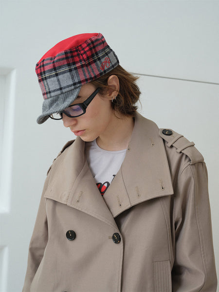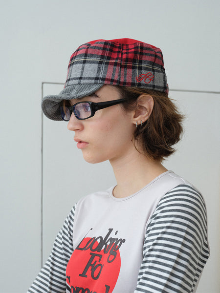 Ins Gale | Plaid Patchwork Embroidered Baseball...