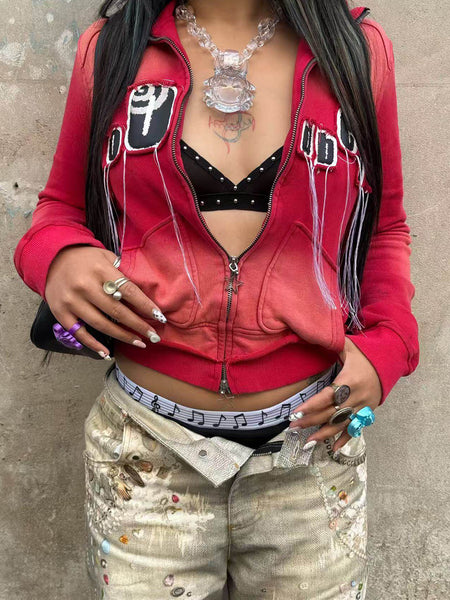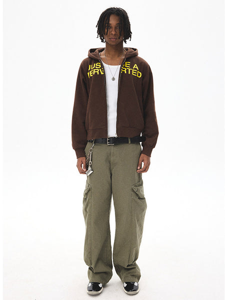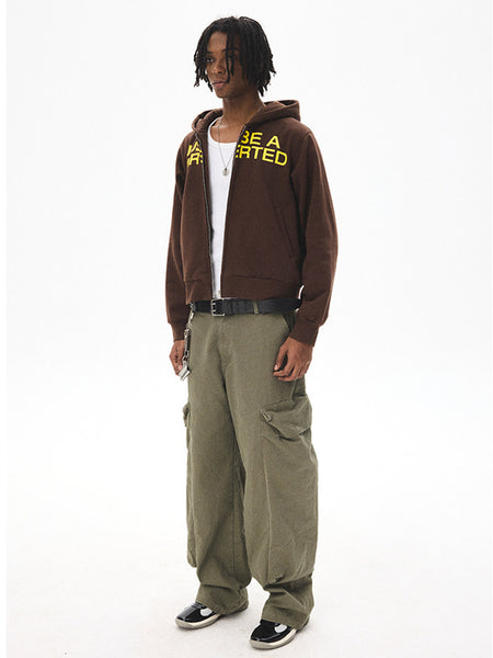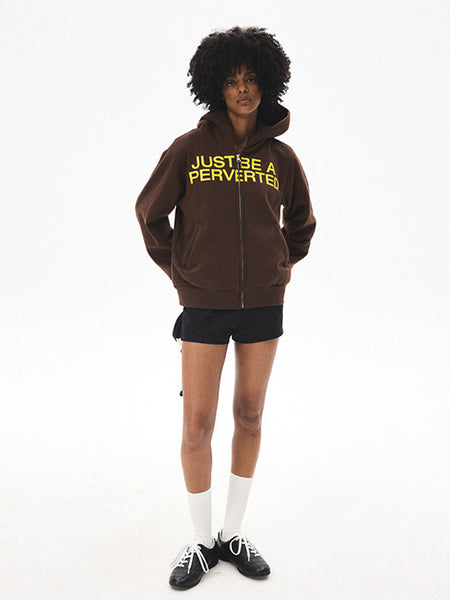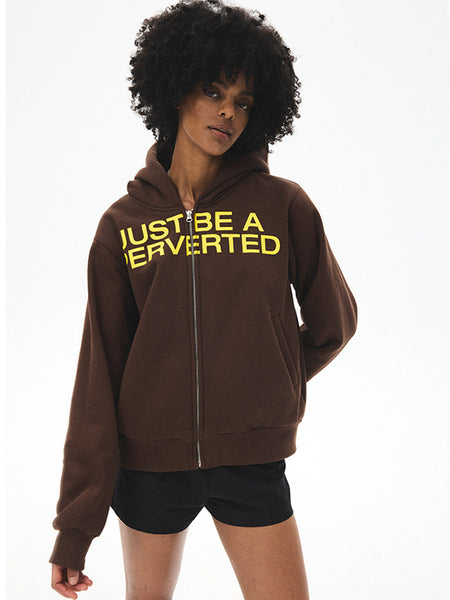 CRICLE CAGE | Letter Print Zip-Up Sweatshirt