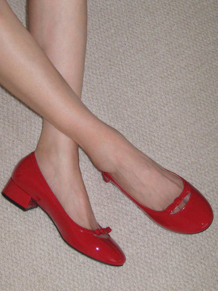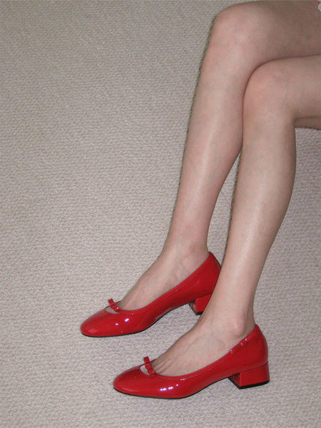 ElegiFemme | Patent Leather Ballet Mid-Heel Shoes