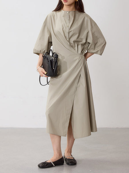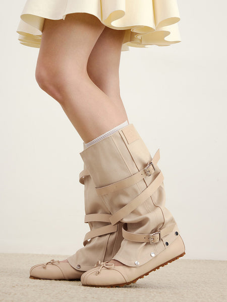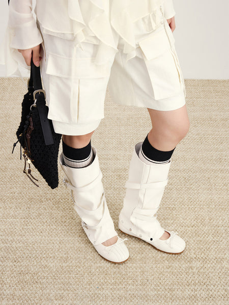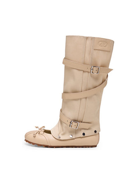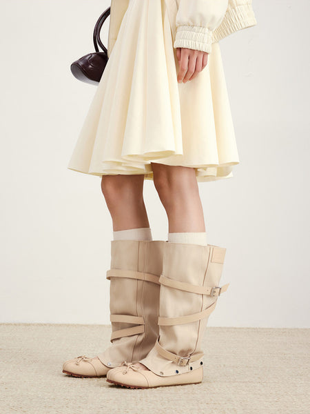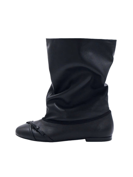 ElegiFemme | Round-Toe Pleated Mid-Calf Boots