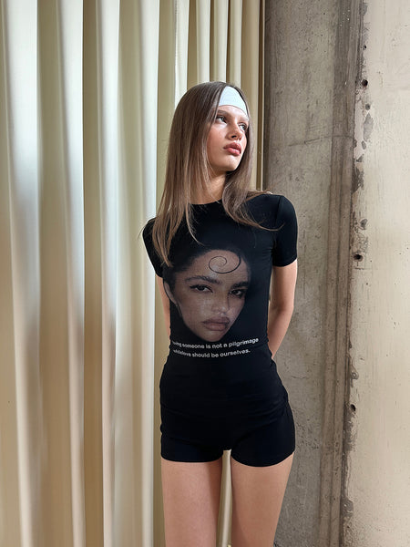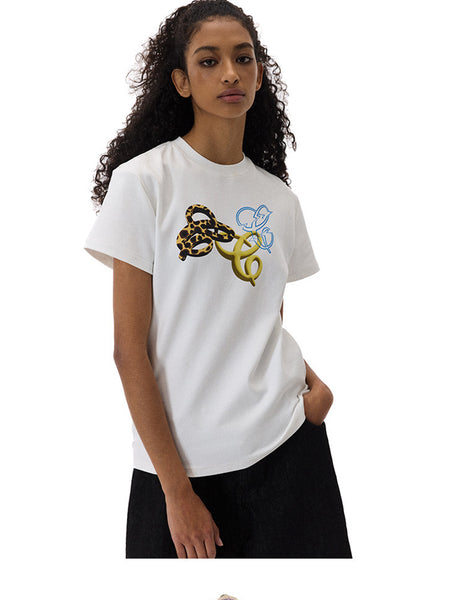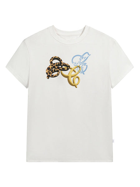 0122stepll | Printed Loose Fit Off-Shoulder T-s...