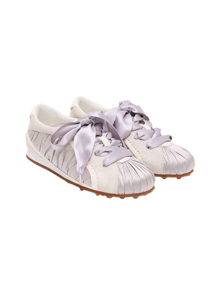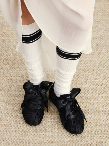 lostinecho | Pleated Satin Suede Ballet Flats