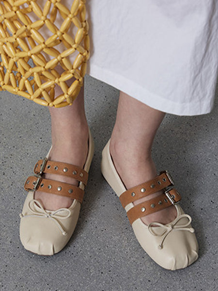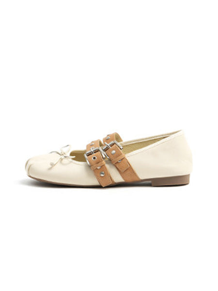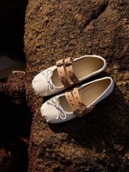 MILU | Double-Strap Genuine Leather Ballet Shoes