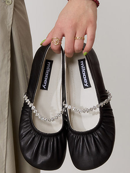 MILU | Ballet Flats With A Single Strap And Rhi...