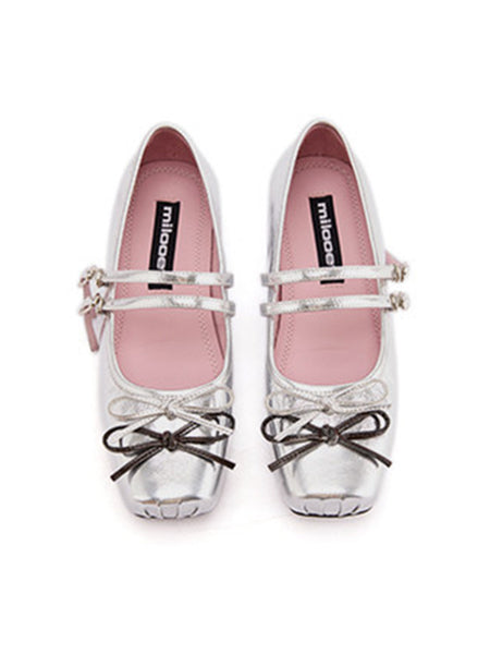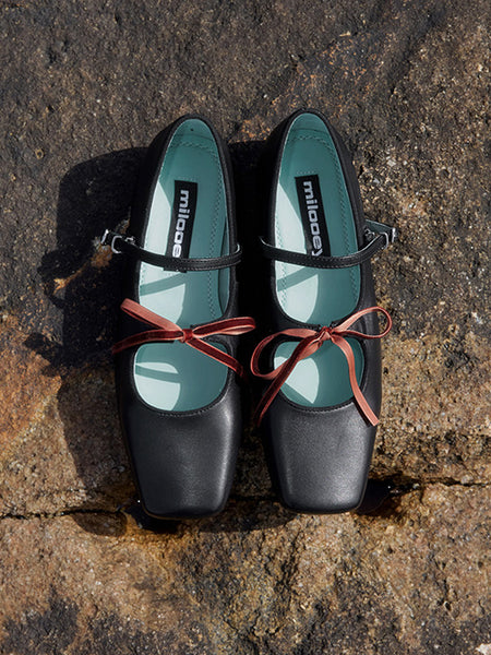 MILU | Square-toe Mary Jane Shoes with Bow