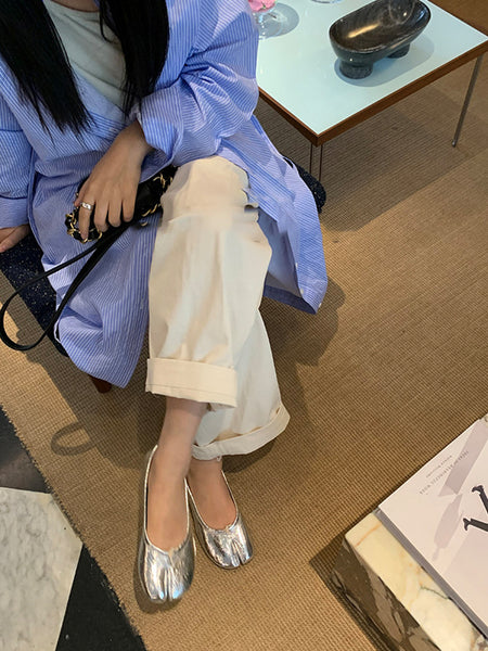 MILU | Genuine Leather Soft-Soled Split-Toe Flats