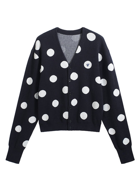 CRICLE CAGE | Polka Dot Knitted Long-Sleeved Sw...