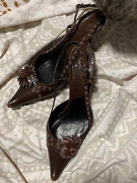 9HAO | Studded Pointed-Toe High-Heeled Sandals