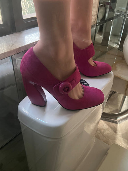 9HAO | Round-toe Chunky Heel Buckle Strap High ...