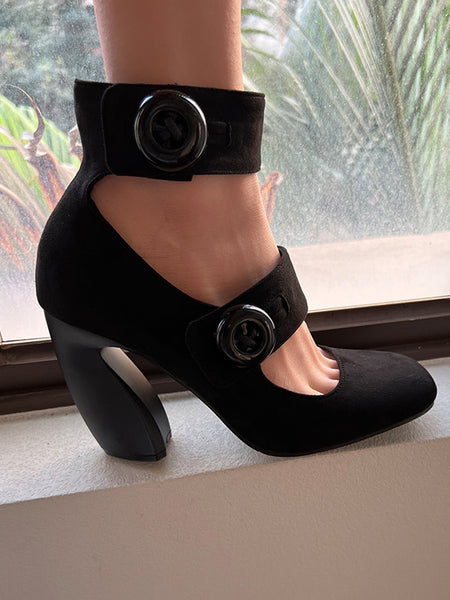 9HAO | Irregularly Shaped Round-Toe High Heels