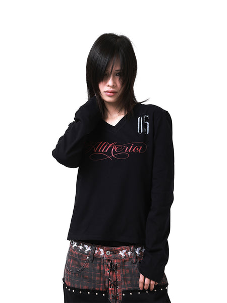 NO ROMANCE | Lace-up Printed Long-Sleeved Top