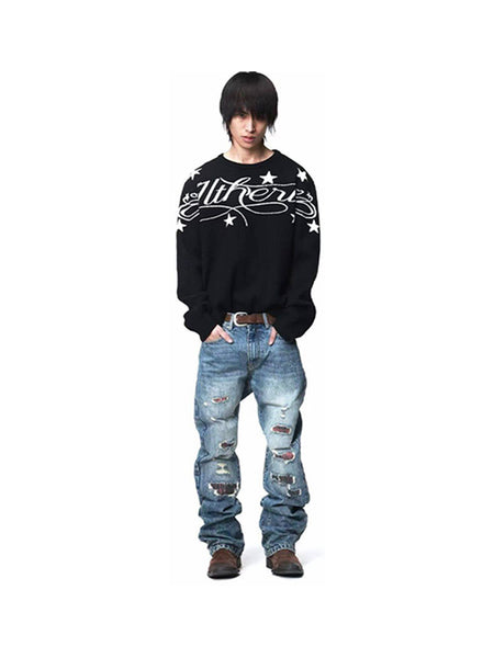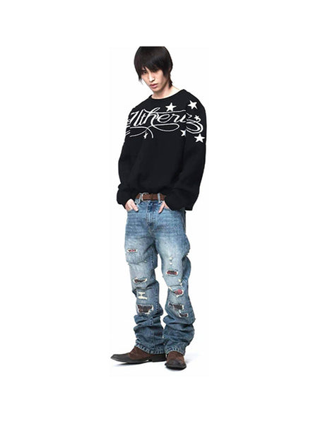 DOUBLEPUNCH | Crew Neck Printed Long-Sleeved T-...