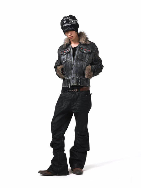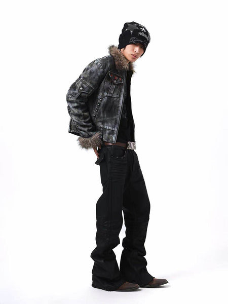 DOUBLEPUNCH | Distressed Mud-Dyed Low-Rise Curv...