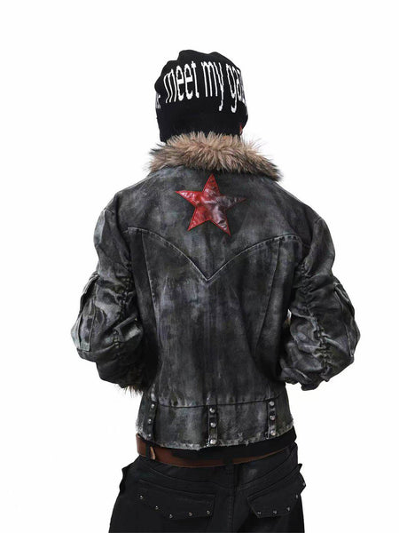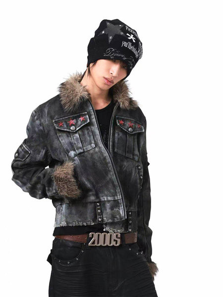 DETW | Fur-Collared Metal Buckle Embroidered Coat