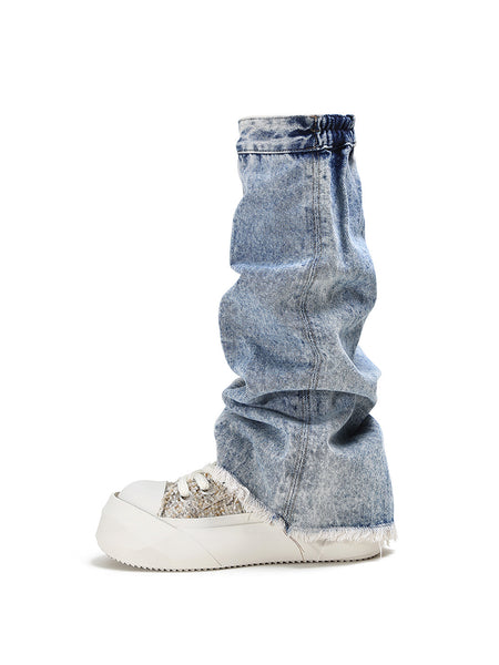 ADC丨Bare Look Washed Denim Platform Sneakers