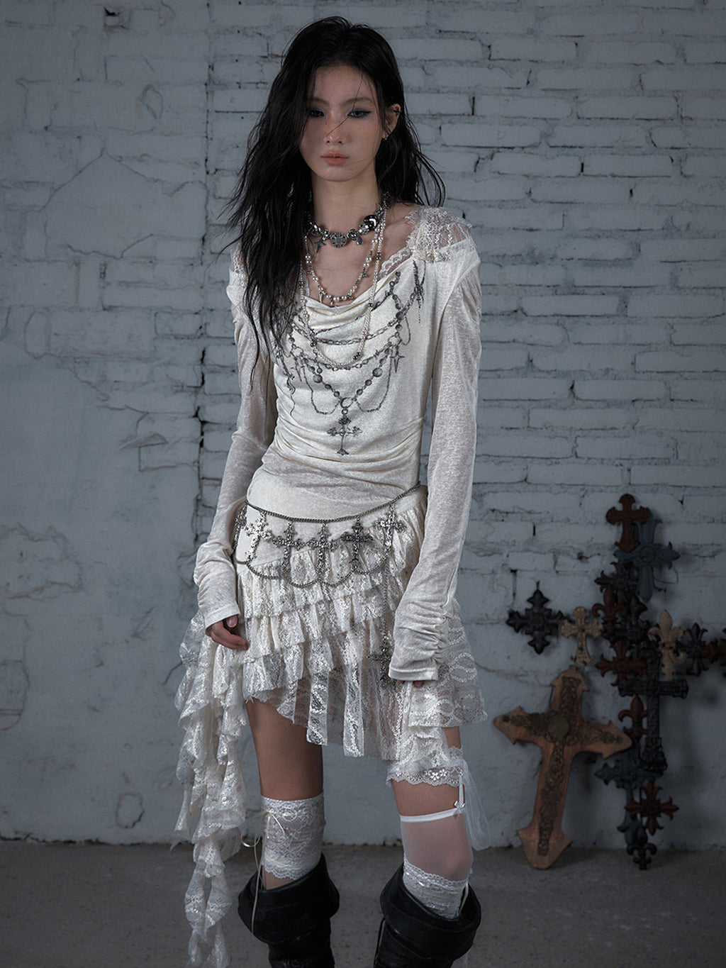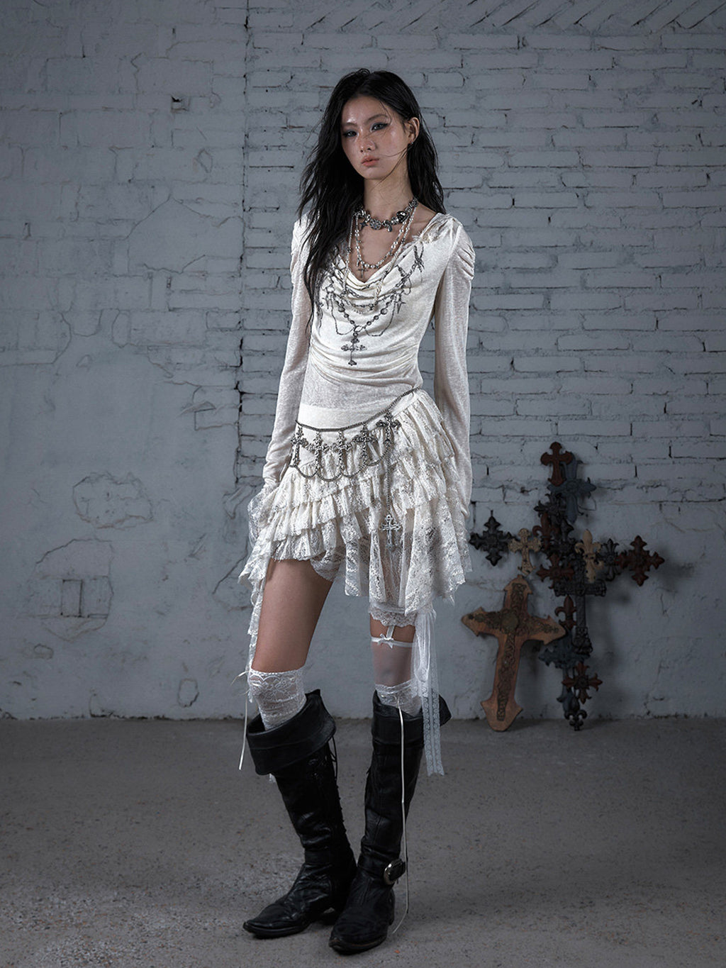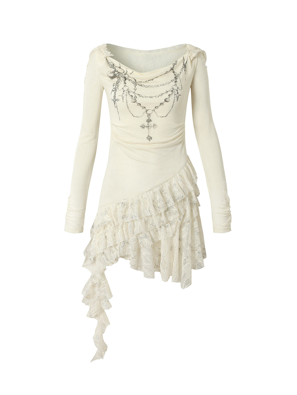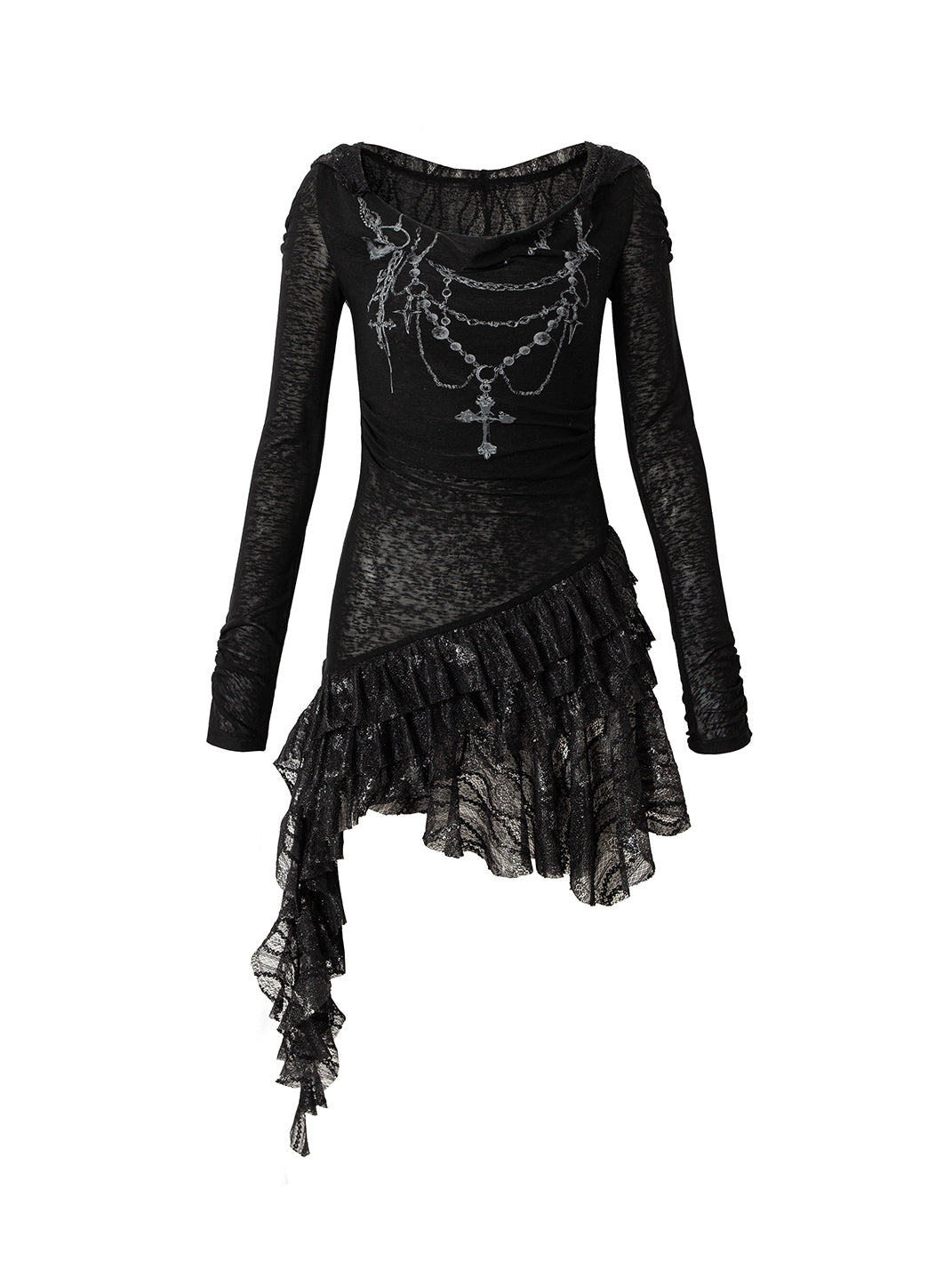 NO ROMANCE | Lace Knit Bottom Long Sleeve Hooded Dress Skip to content
